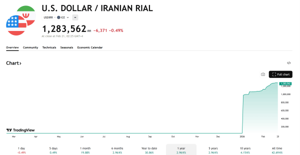 Abwertung des iranischen Rial gegenüber dem US-Dollar. Daten: TradingView.