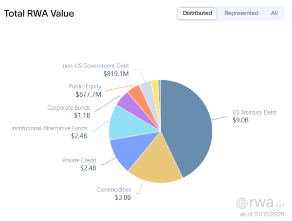 Gesamter tokenisierter RWA-Wert nach Vermögenswert. Quelle: RWA.xyz